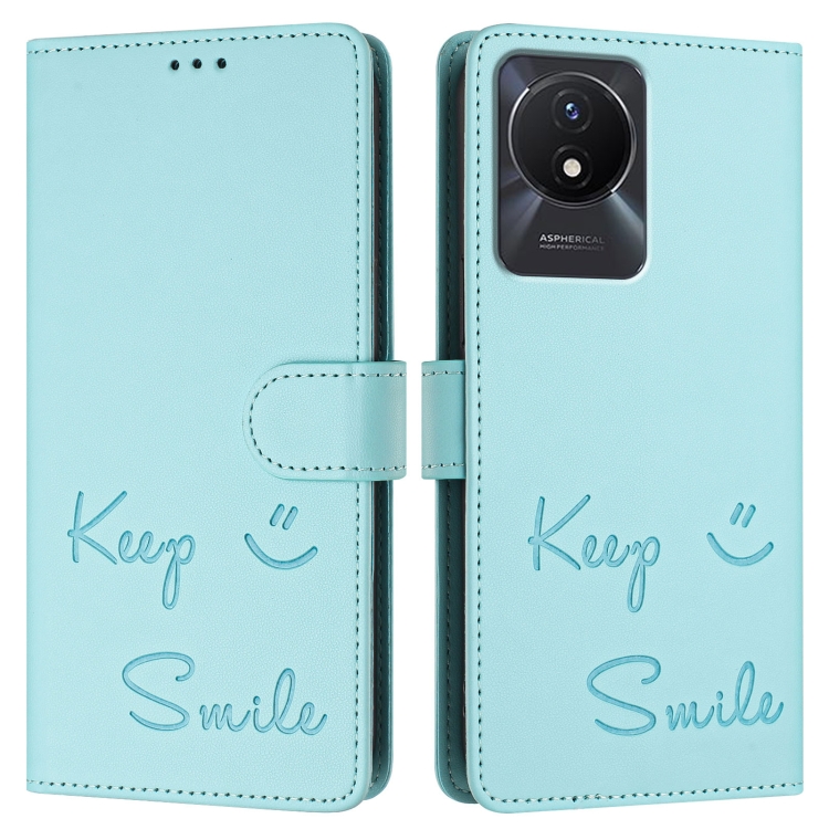 Funda de Cuero Rfid con Relieve Sonriente para Vivo Y02A 4G/Y02 4G (Verde Menta)