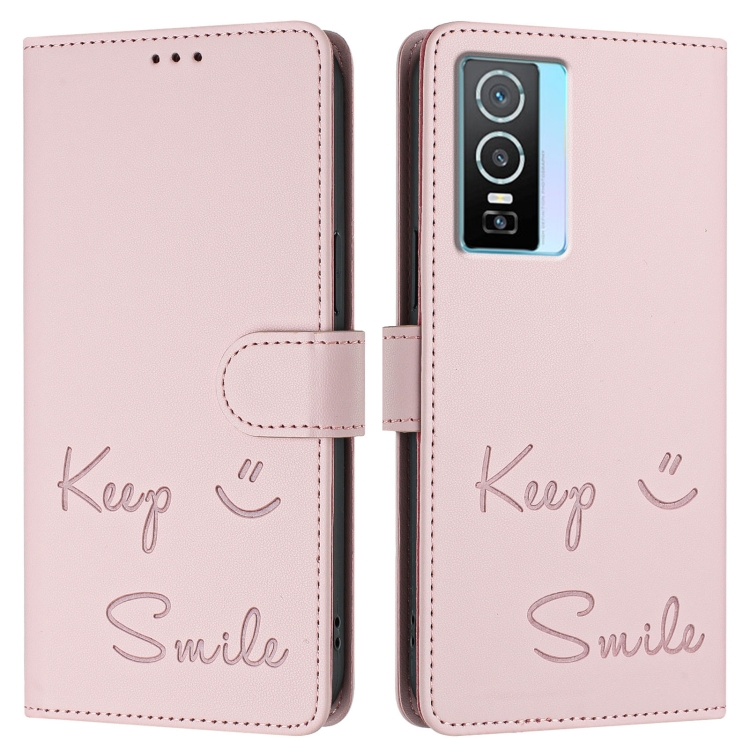 Funda de Cuero Rfid con Relieve Sonriente para Vivo Y76 5G (Rosa)