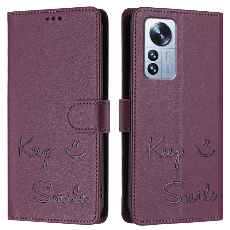 Funda de Cuero Rfid con Relieve Sonriente para Xiaomi 12 Pro/12S Pro (Violeta)