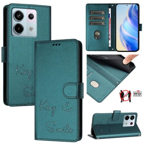 Funda de Cuero Rfid con Relieve Sonriente para Xiaomi Poco X6 (Verde Pavo Real)