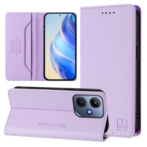 Funda de Cuero RFID con Succión Magnética y Doble Pliegue para Infinix Hot 30I/X669 Rc01 (Morado Claro)