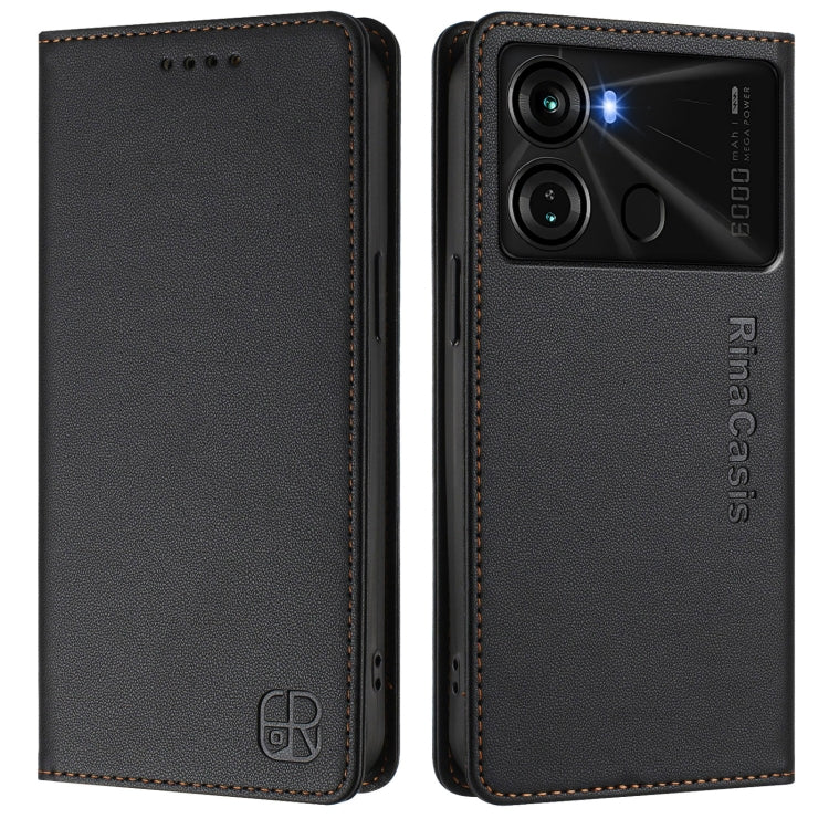 Funda de Cuero Rfid con Succión Magnética y Doble Pliegue para Teléfono Itel P40 Rc01 (Negra)
