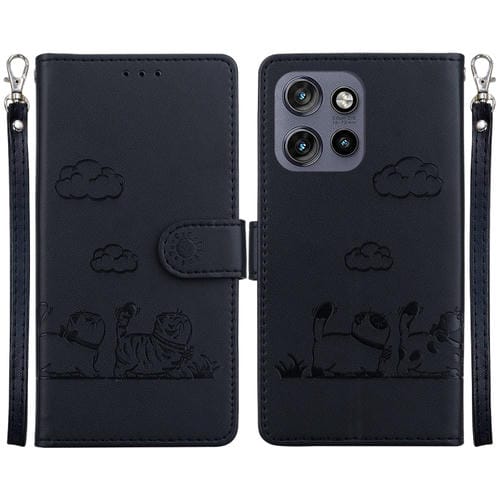 Funda de Cuero Rfid Motorola Edge 50 Neo 5G con Diseño de Gatos (Negro)