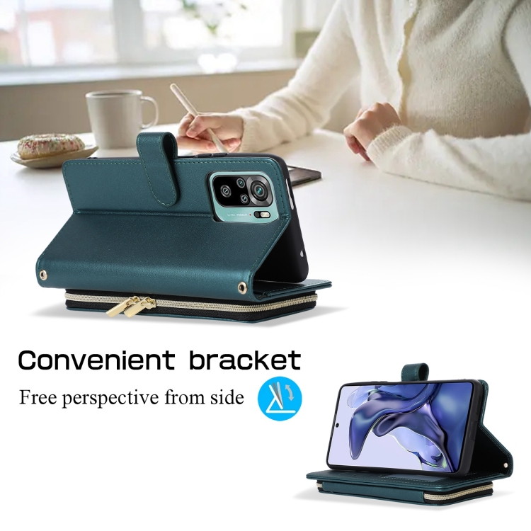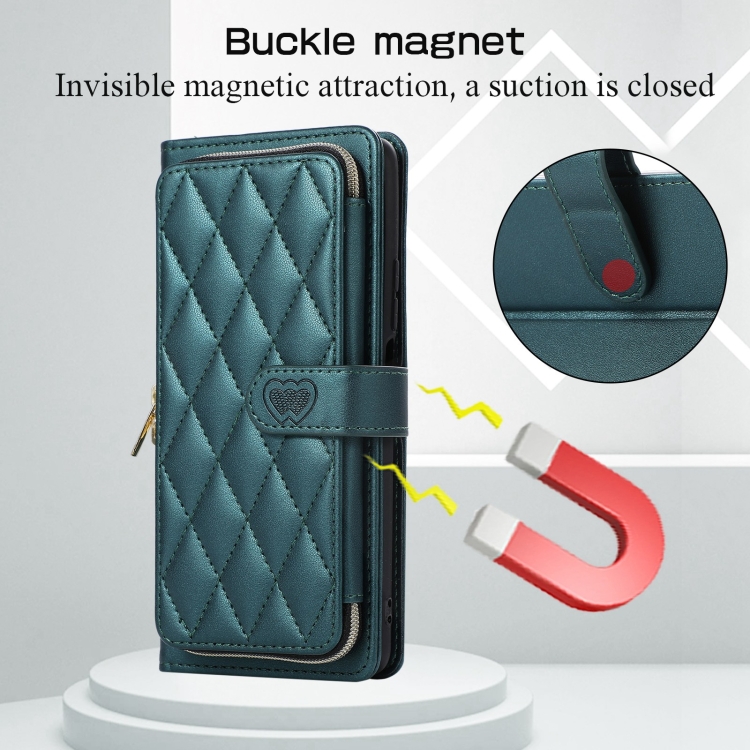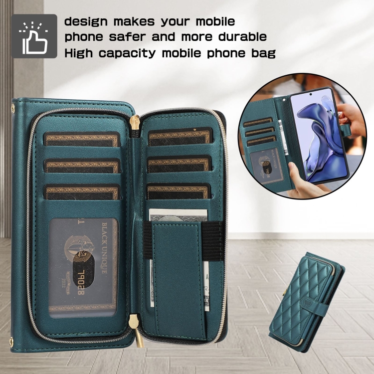 Funda de Cuero Tipo Billetera con Cremallera Completa y Diseño Rombal para Redmi Note 10/10S (Verde)