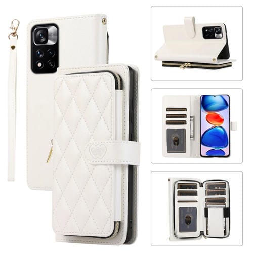 Funda de Cuero Tipo Billetera con Cremallera Completa y Diseño Romboidal para Xiaomi 12T/12T Pro (Blanca)