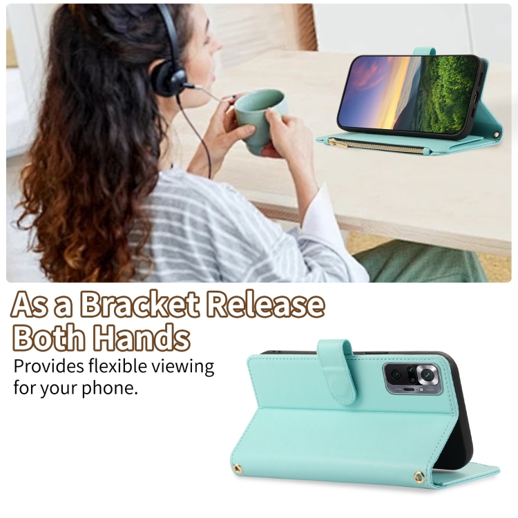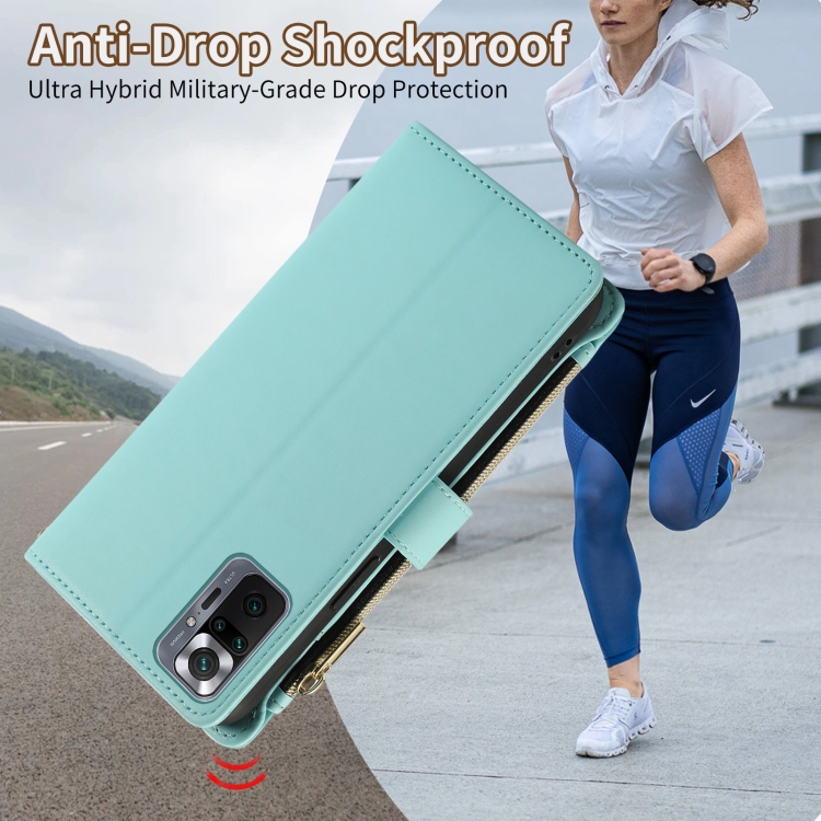 Funda de Cuero Tipo Billetera con Cremallera Rombal para Redmi Note 10 Pro/10 Pro Max (Cian)