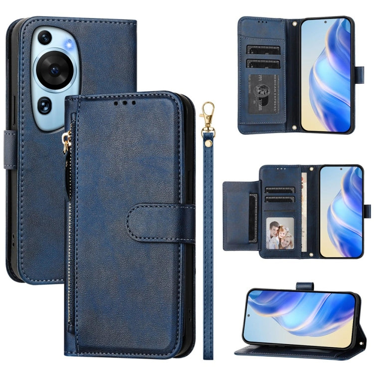 Funda Cuero Tipo Billetera Huawei P60 Art con Cremallera y Ranuras para Tarjetas (Azul)