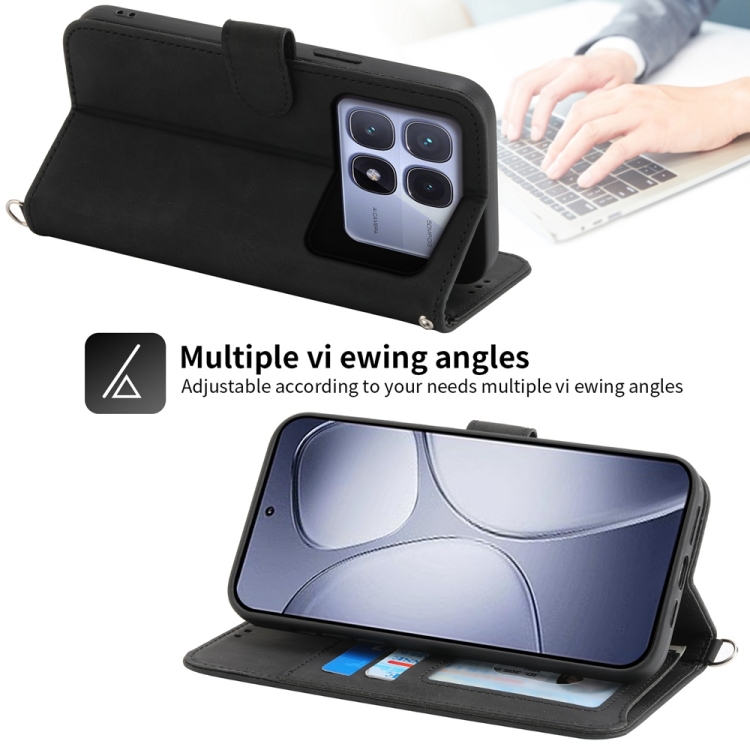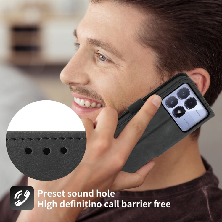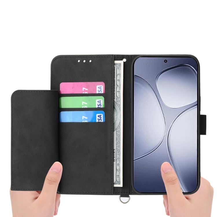 Funda de Cuero Tipo Billetera con Relieve de Flores y Tacto de Piel para Redmi K70 Ultra (Negra)