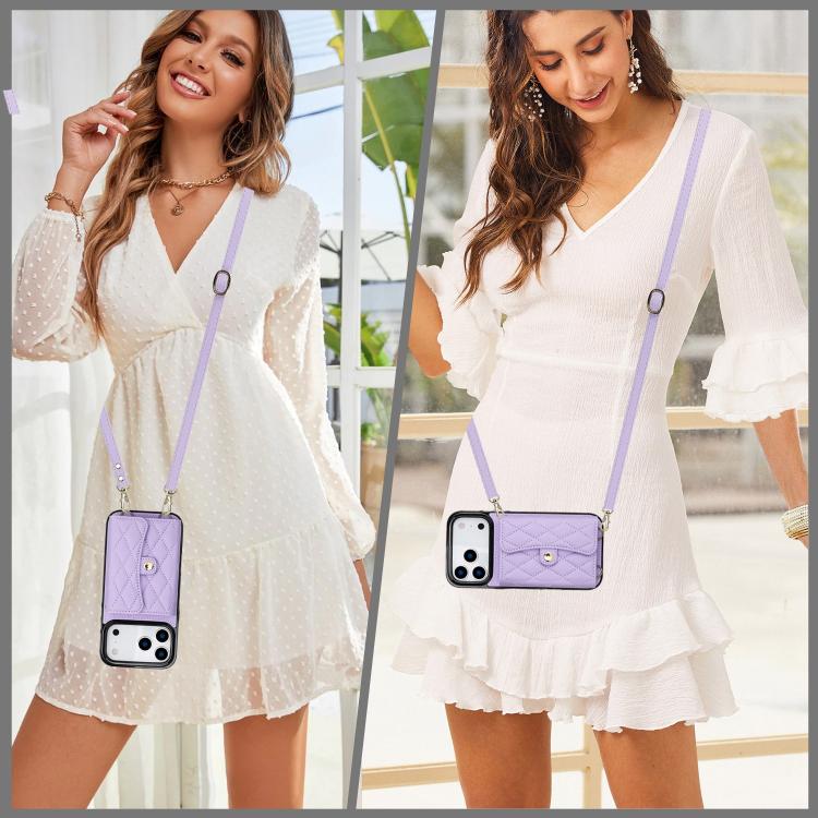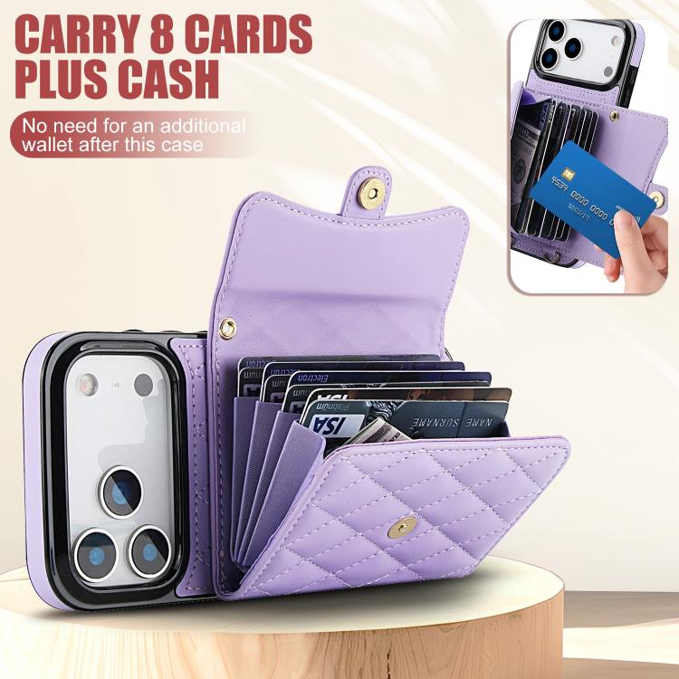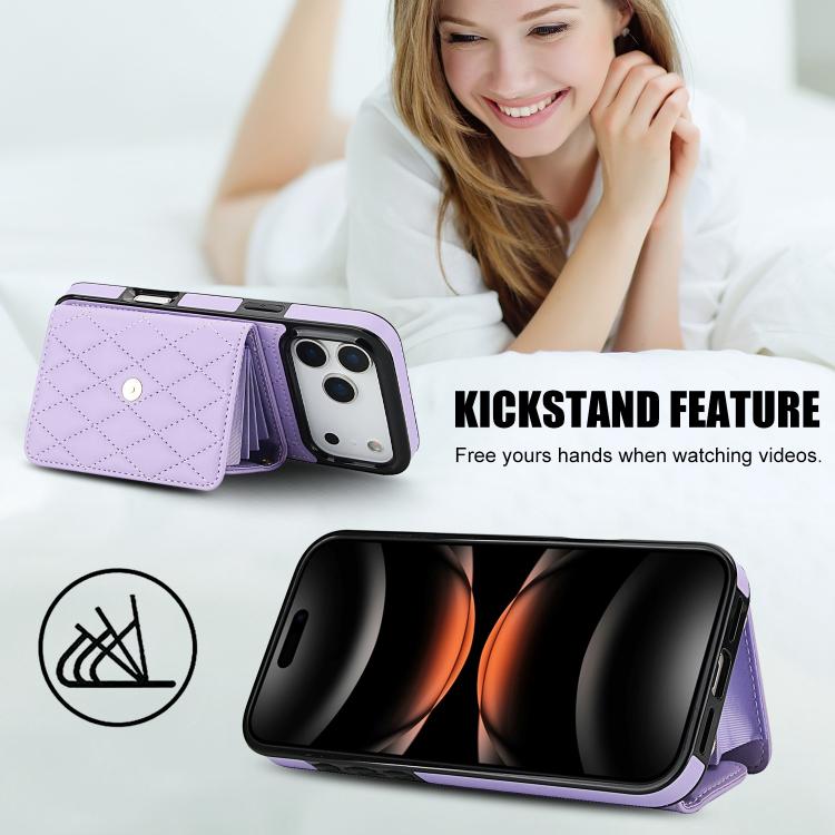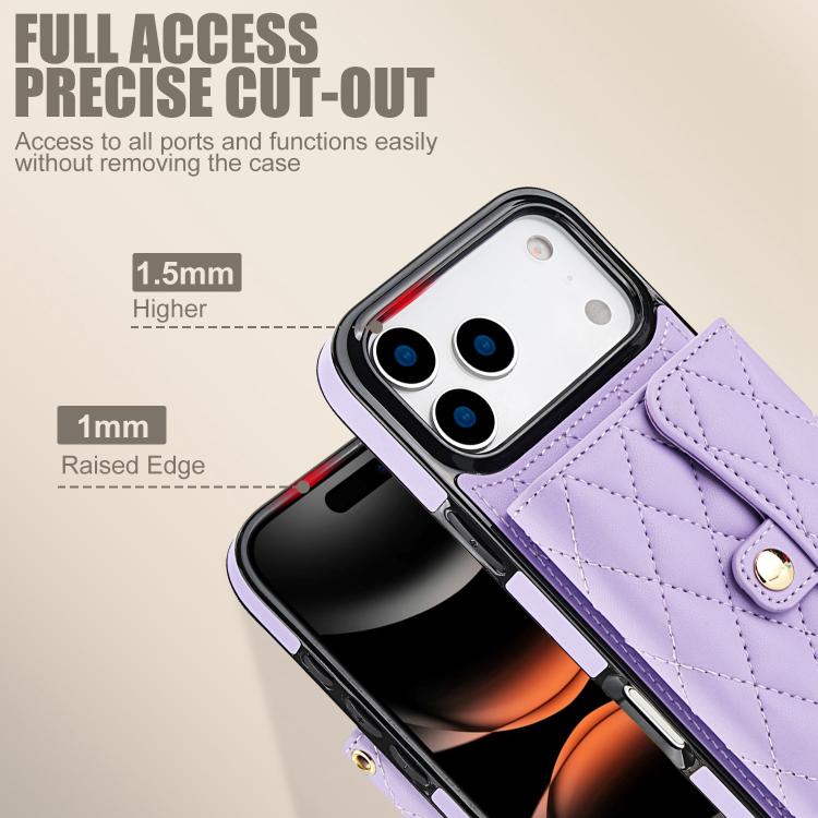 Funda de cuero tipo cartera horizontal con diseño rómbico cruzado para iPhone 17 Pro (morada)
