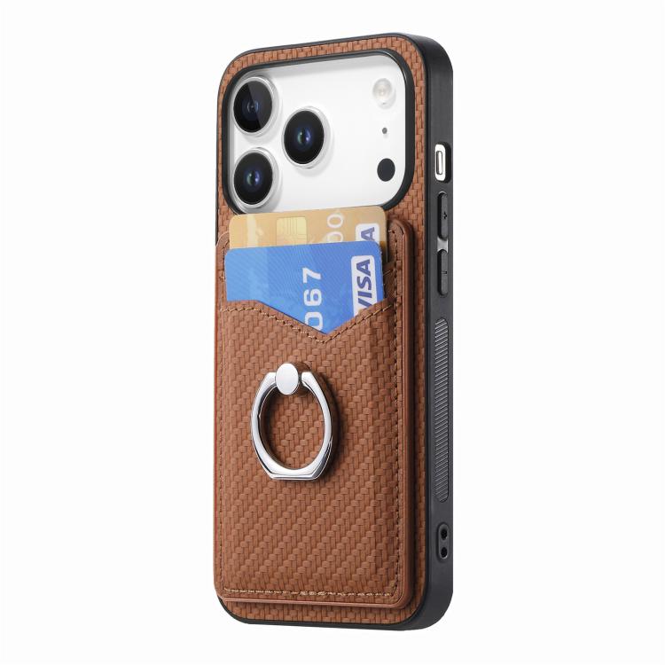 Funda de fibra de carbono con anillo para tarjeta para iPhone 17 Pro Max (marrón)