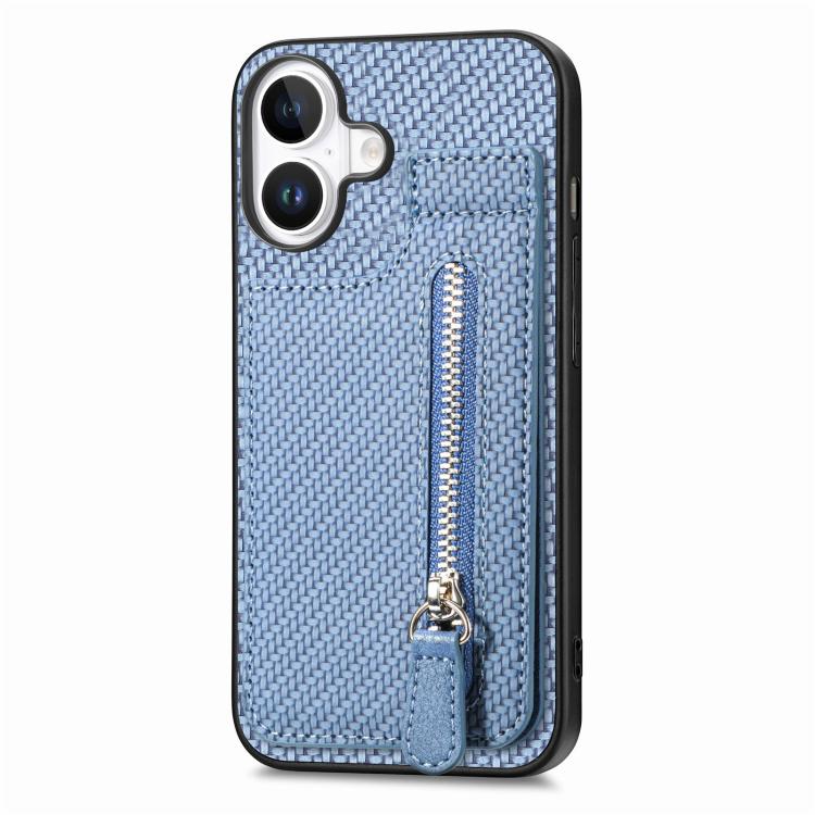 Funda de fibra de carbono con cremallera vertical para iPhone 17 (azul)