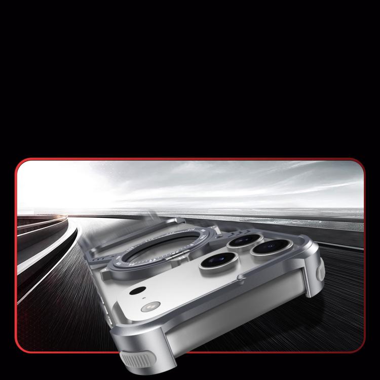 Funda de metal MagSafe sin marco para iPhone 17 Pro, con soporte 360°, forma de S, airbag (negro)