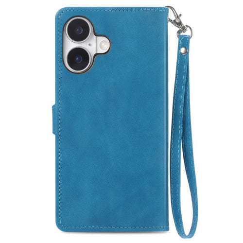 Funda de piel con cremallera y diseño floral en relieve para iPhone 17 (azul)