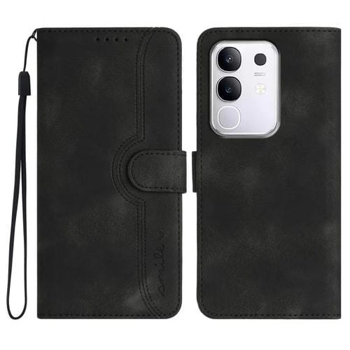 Funda de Piel con Diseño de Corazón para Vivo Y29 4G (Negra)