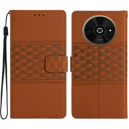 Funda de Piel con Efecto Piel En Relieve de Diamante para Xiaomi Poco C61 (Marrón)