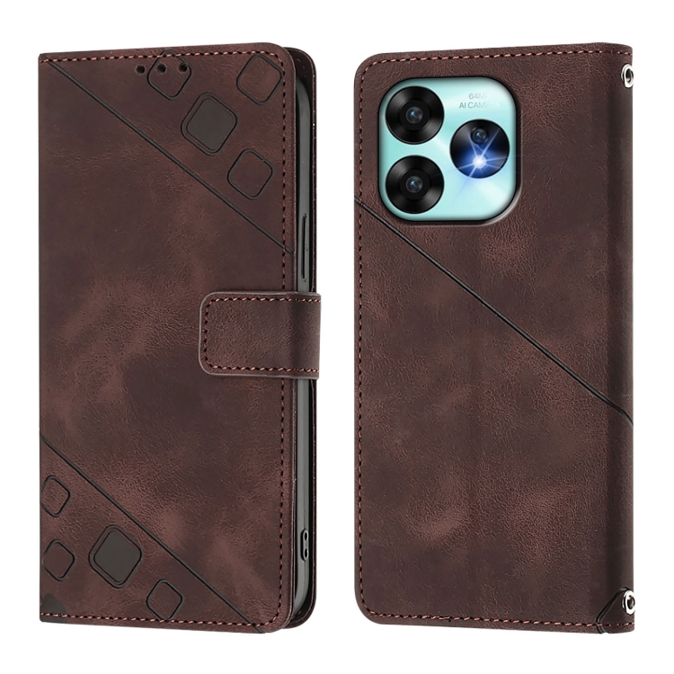 Funda de Piel con Relieve para Teléfono Umidigi A15/A15C/A15T (Marrón)