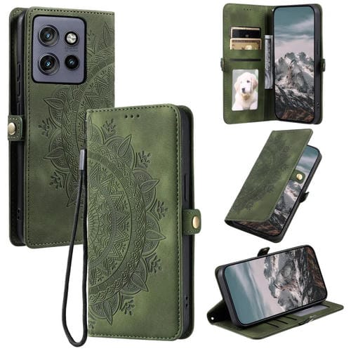 Funda de Piel con Relieve Totem para Motorola Edge 50 Neo Skin Feel (Verde Oscuro)
