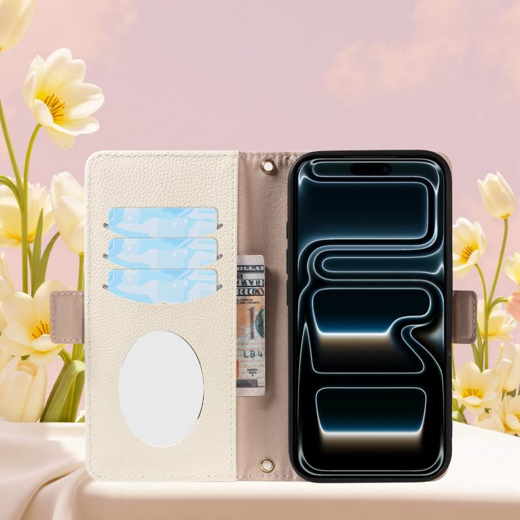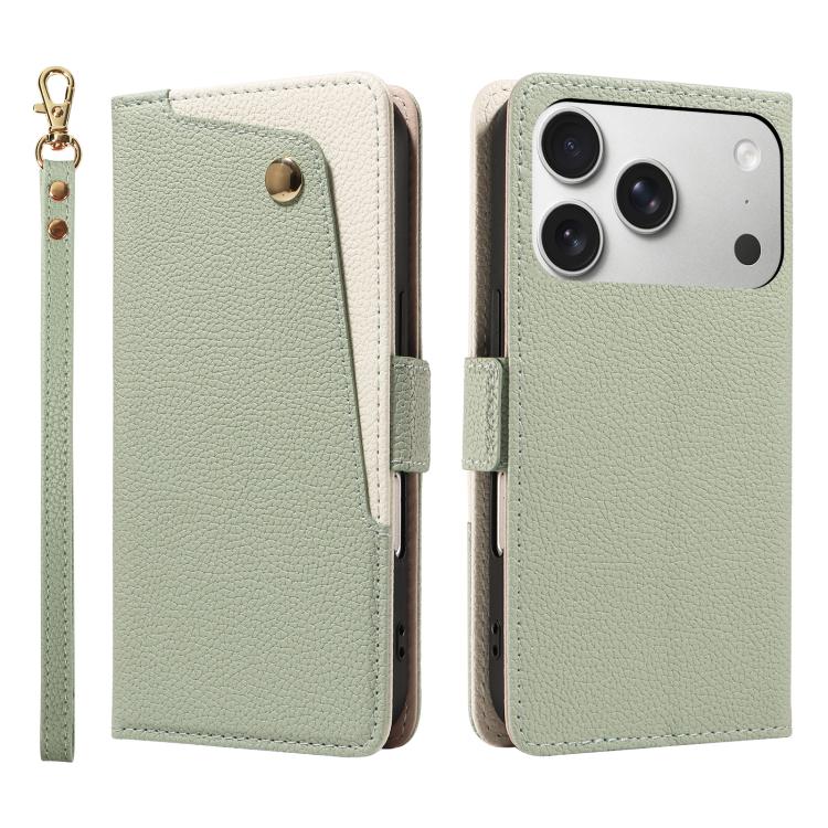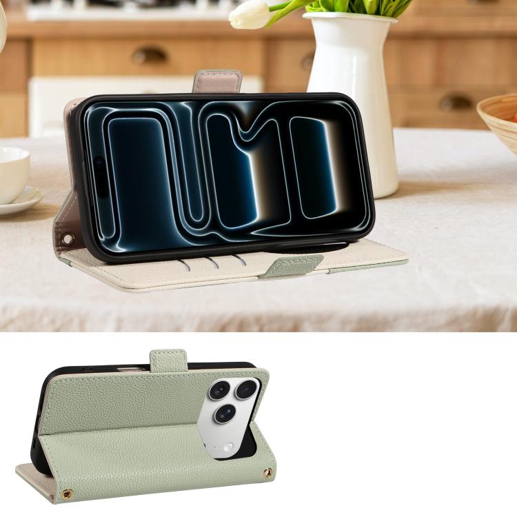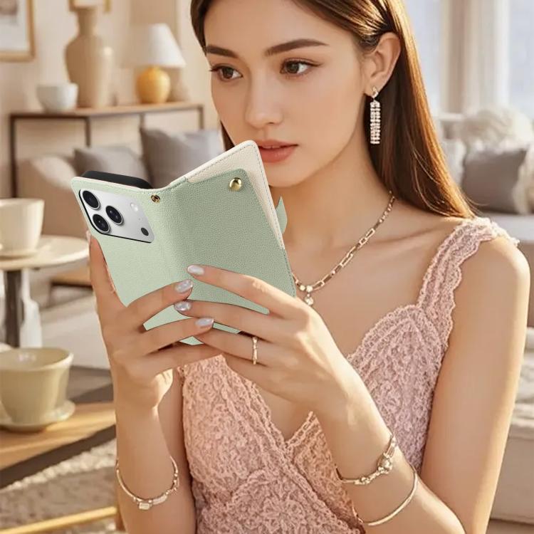 Funda de piel con textura de lichi y espejo para iPhone 17 Pro (verde)