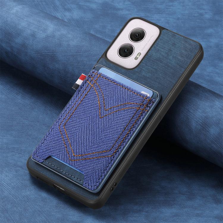 Funda de Piel con Textura Vaquera para Motorola Moto G Power 5G 2024 con Ranura para Tarjetas (Azul)