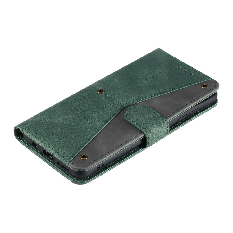 Funda de Piel de Becerro para Motorola Moto G05 con Costuras Efecto Uñas (Verde)