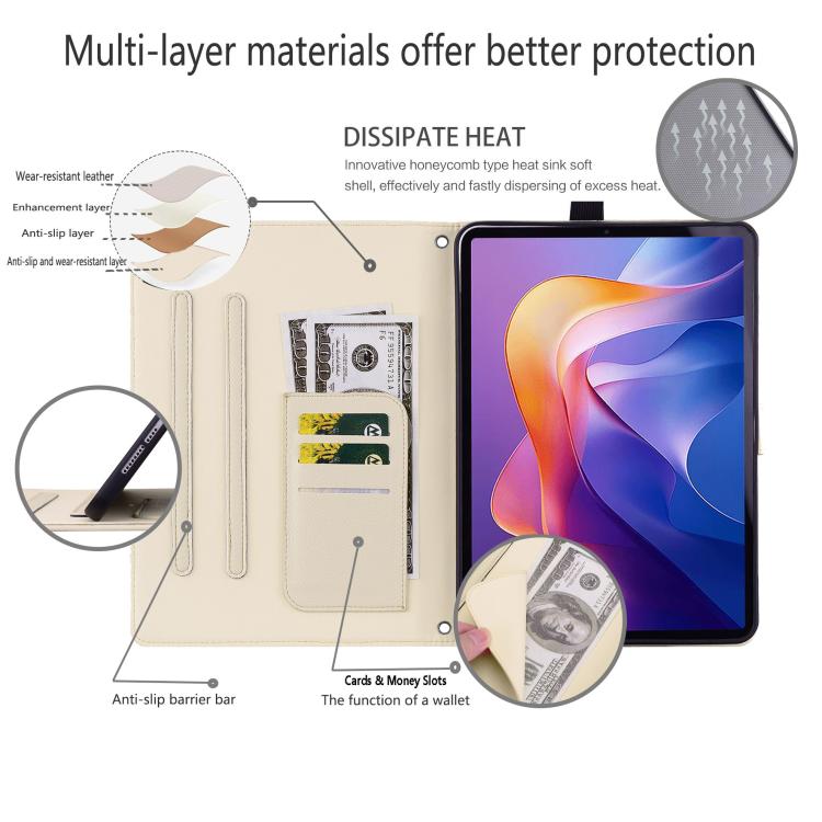 Funda de piel de lichi con tacto de gato para Samsung Galaxy Tab A9+ (blanco albaricoque)