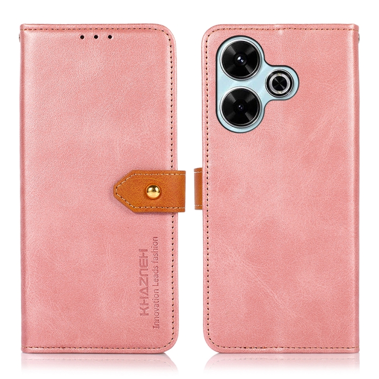 Funda de Piel de Vaca con Tapa para Teléfono Xiaomi Redmi 13 4G Khazneh (Oro Rosa)