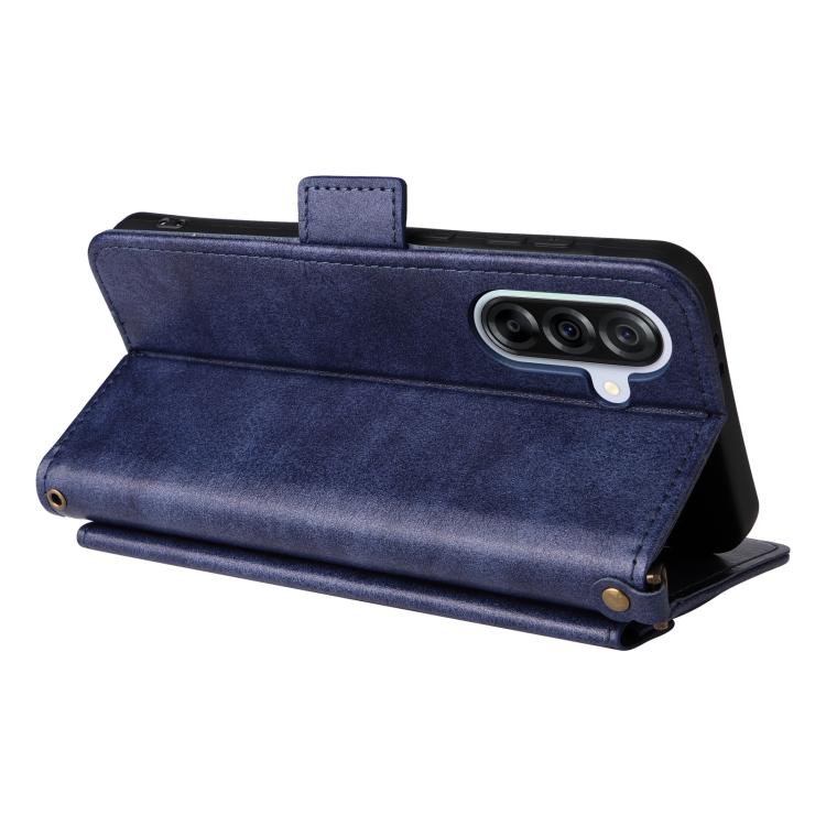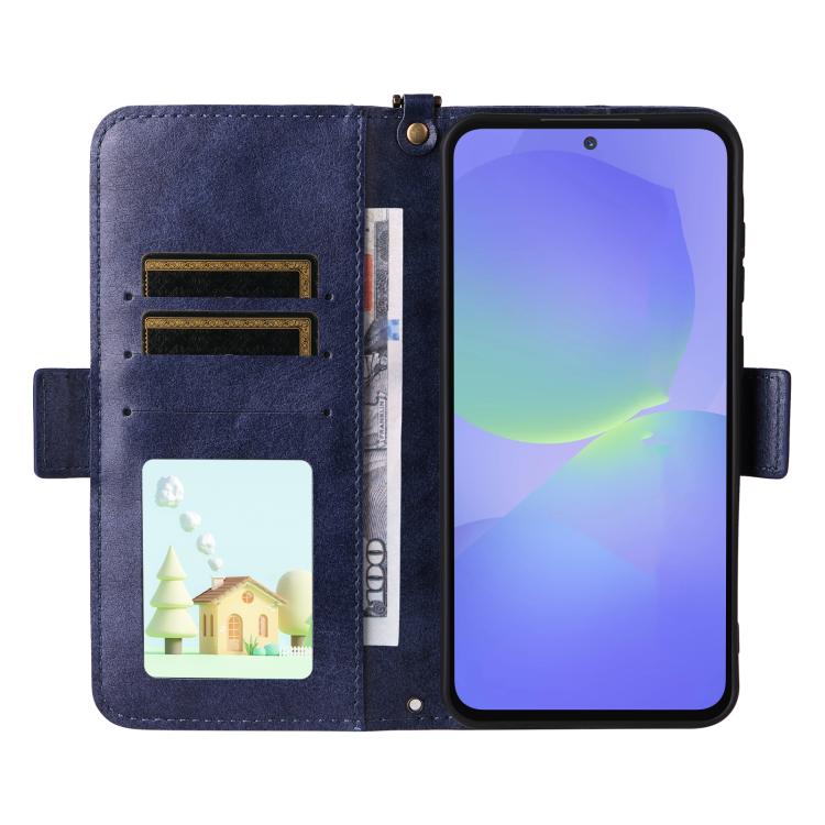 Funda de piel de vacuno cruzada con ranuras para múltiples tarjetas para Samsung Galaxy A36 5G (azul)