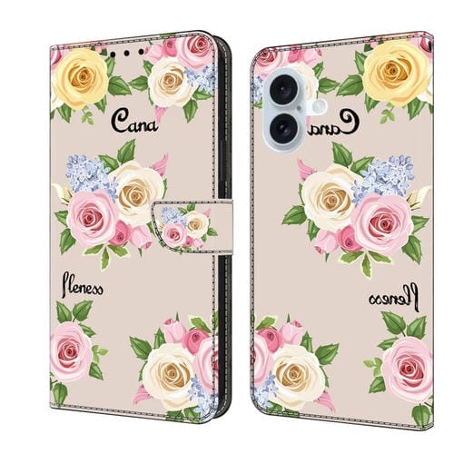 Funda de Piel para iPhone 16 Pintada a Mano Flores de Colores