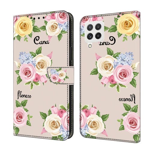 Funda de piel Samsung Galaxy A22 4G Pintada Fresca con Flores de Colores
