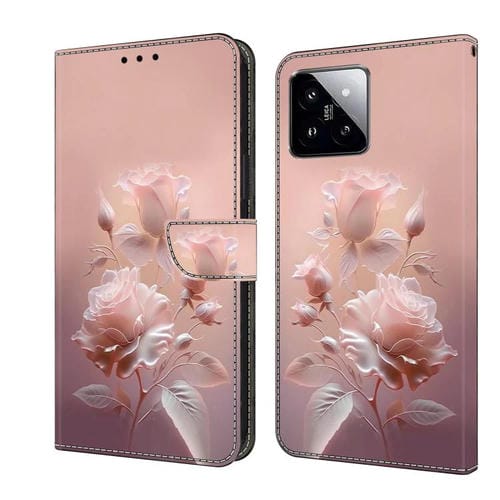Funda De Piel Pintada Fresca Para Teléfono Xiaomi 14 (Flores De Cerámica)