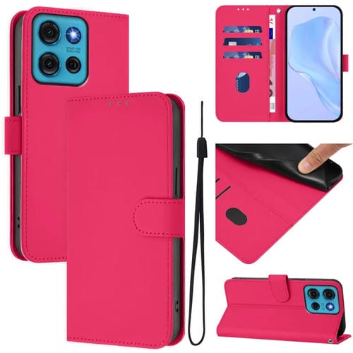 Funda de Piel Sintética con Cordón para Motorola Moto G75 5G (Rosa y Rojo)