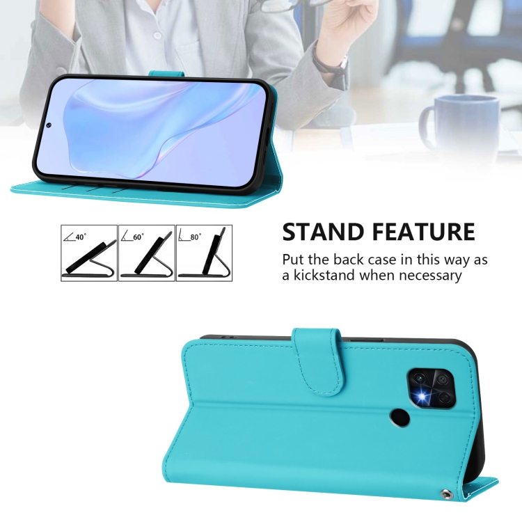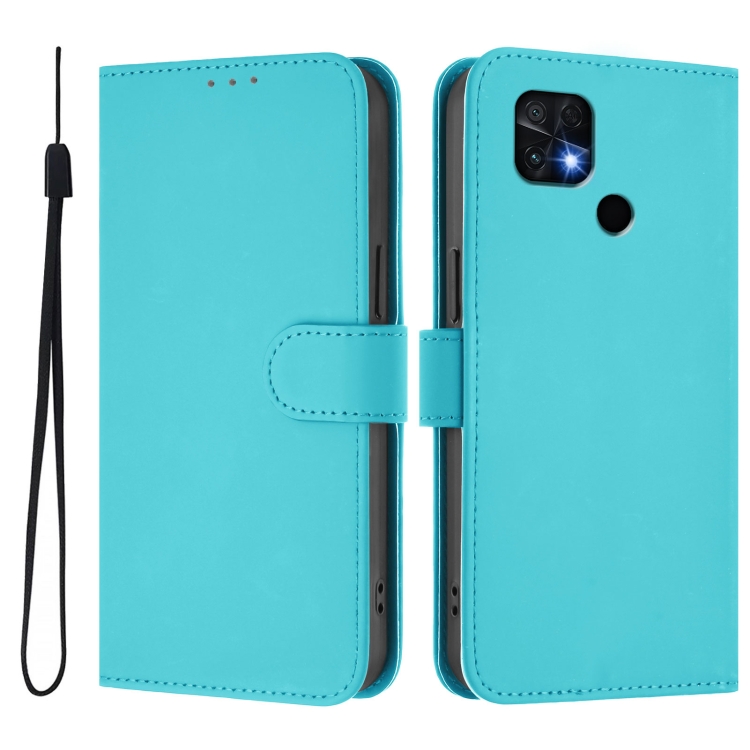 Funda de Piel Sintética con Cordón para Redmi 10C (Azul Lago)