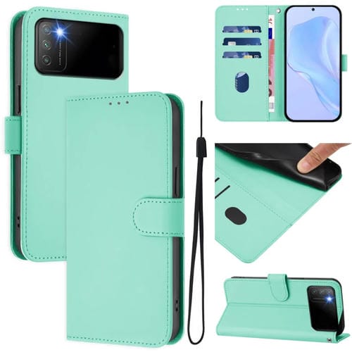 Funda de Piel Sintética con Cordón para Xiaomi Poco M3 (Verde Menta)