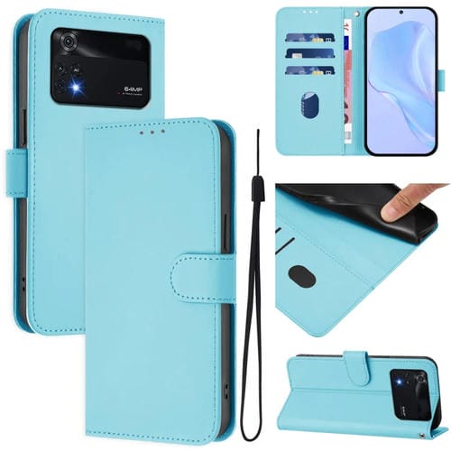 Funda de Piel Sintética con Cordón para Xiaomi Poco M4 Pro 4G (Azul Cielo)