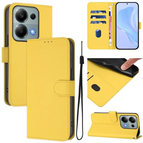 Funda de Piel Sintética con Cordón para Xiaomi Poco M6 Pro 4G (Amarillo Limón)