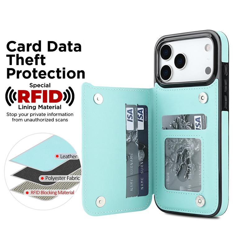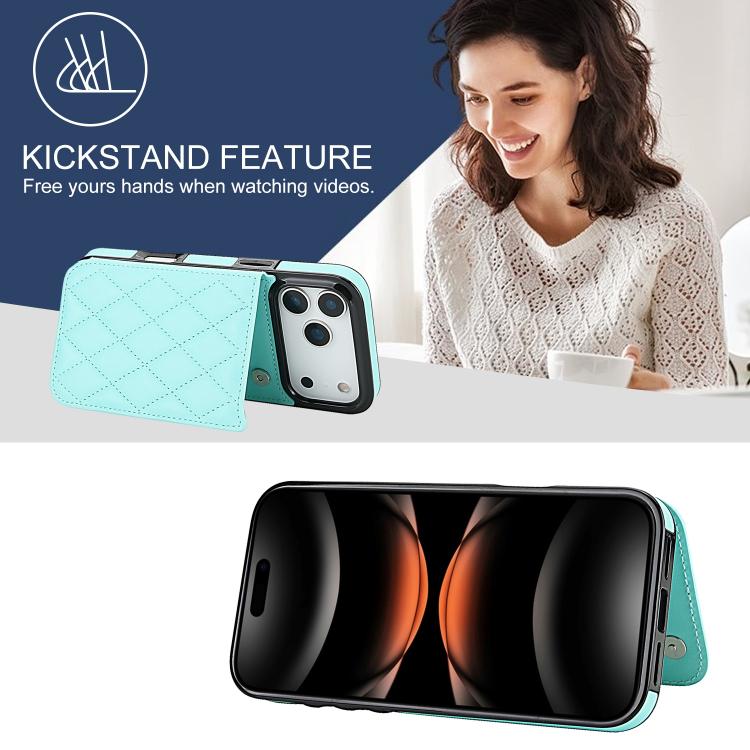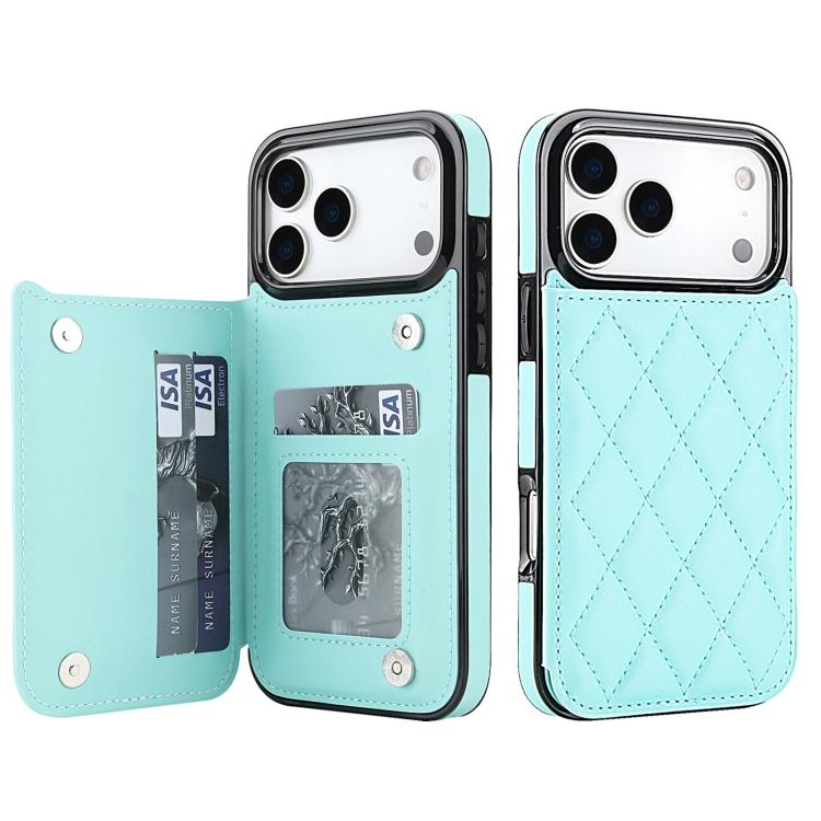 Funda de piel sintética con doble hebilla rómbica para iPhone 17 Pro Max (azul)