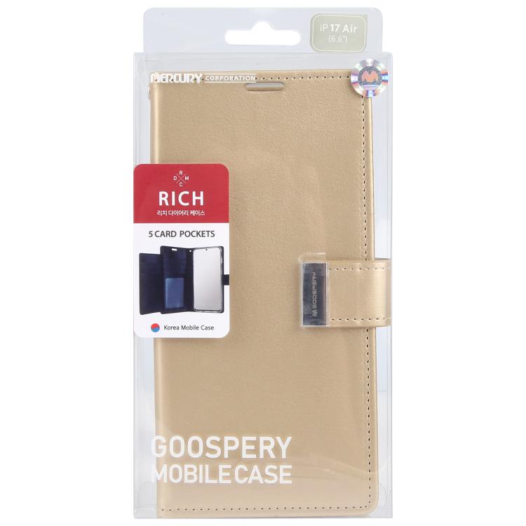 Funda de piel texturizada Crazy Horse para iPhone Air GOOSPERY RICH DIARY (Dorada)
