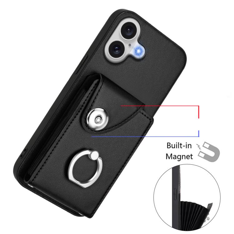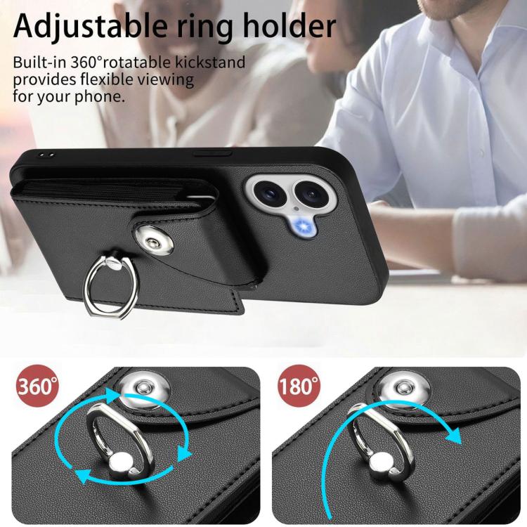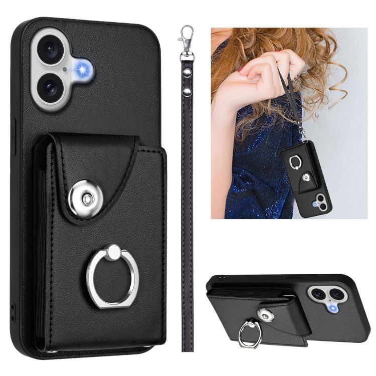 Funda de PU con cordón para iPhone 17, con tarjetero, anillo y soporte (negro)