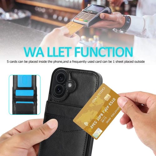 Funda de PU con ranuras para tarjetas para iPhone 17 (color sólido, negro)