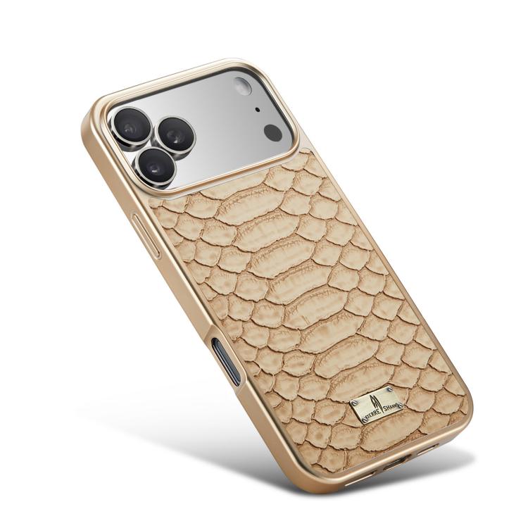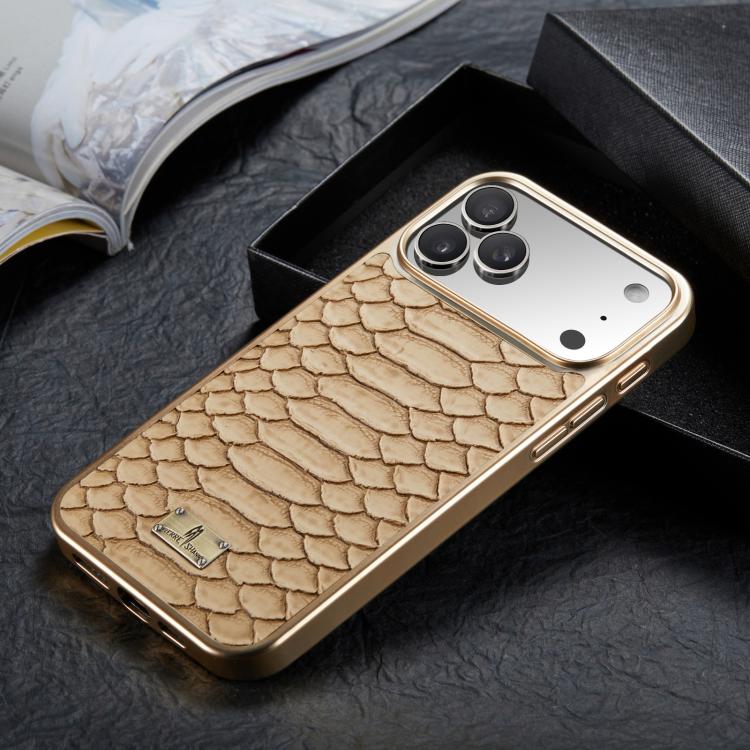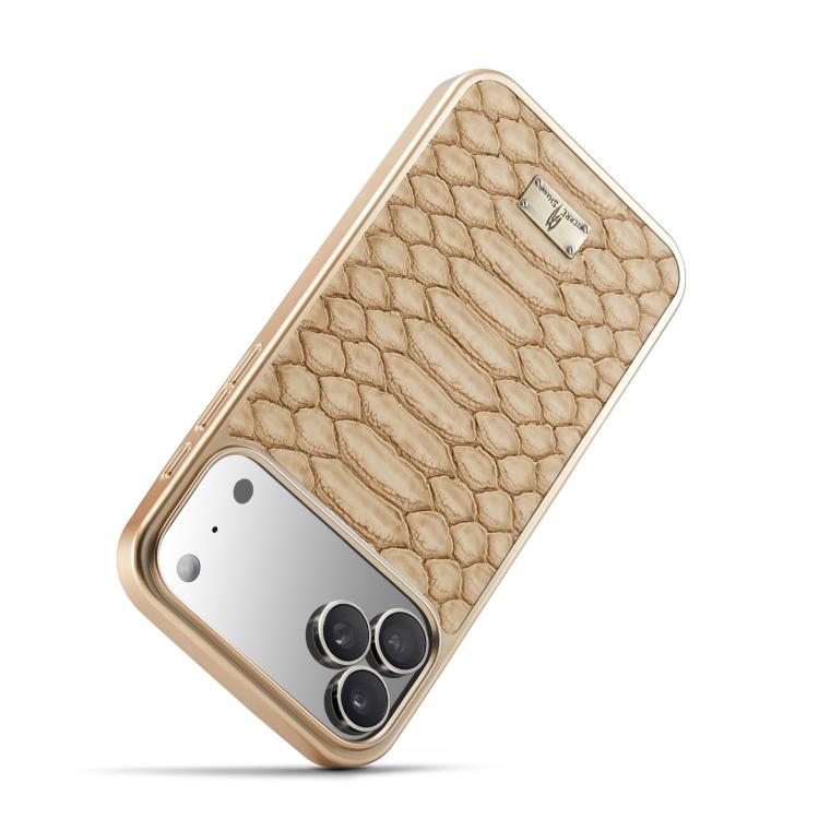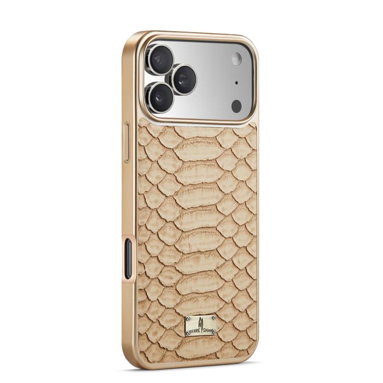 Funda de PU galvanizada con textura de pitón Fierre Shann para iPhone 17 Pro (blanca)