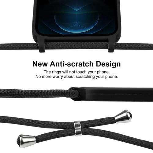 Funda de Silicona Líquida para iPhone 12 Pro Max Crossbody Lanyard (Negro)