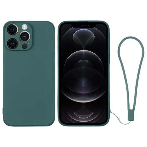 Funda de Silicona para iPhone 12 Pro con Correa para la Muñeca (Verde Oscuro)