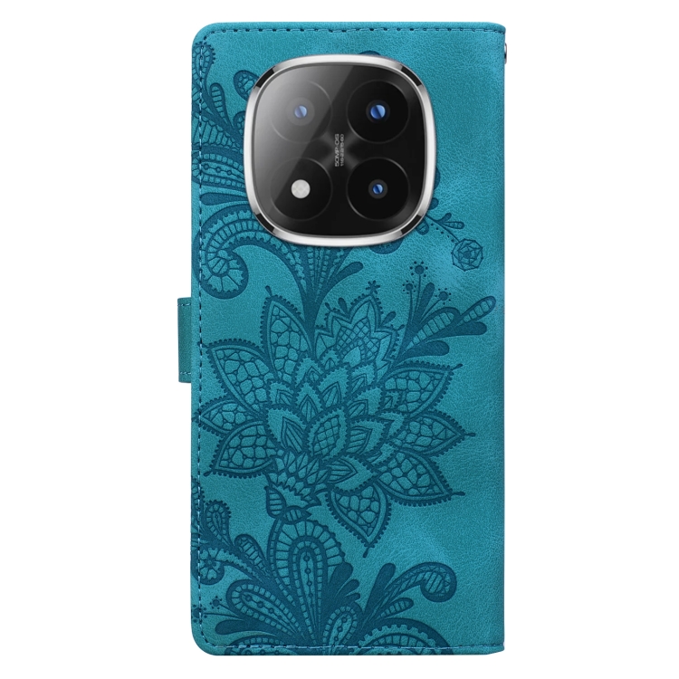 Funda de Teléfono con Hebilla Magnética de Pu con Encaje Floral En Relieve y Correa para la Muñeca para Redmi Note 14 Pro / Note 14+ (Verde)