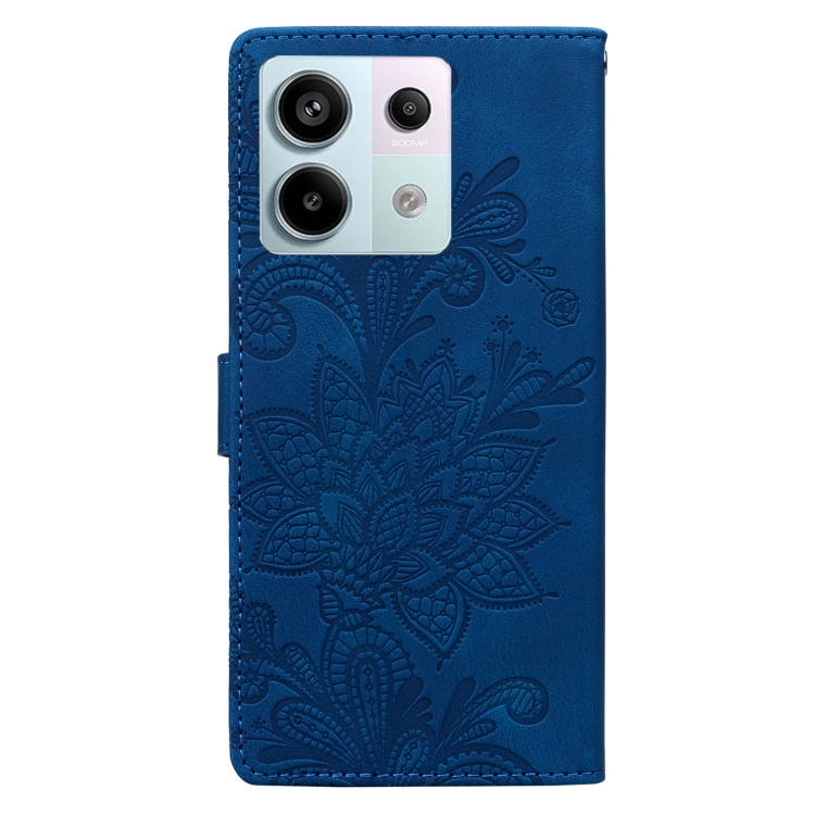 Funda de Teléfono con Hebilla Magnética y Encaje Floral En Relieve para Redmi Note 13 Pro 4G (Azul)