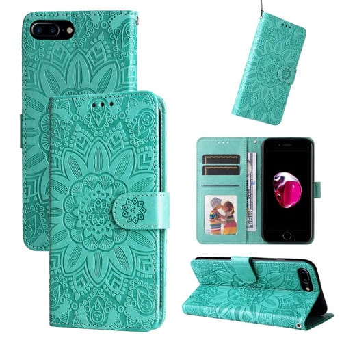 Funda de Teléfono Cuero Estampado Girasol En Relieve iPhone 7 Plus 8 Plus (Verde)