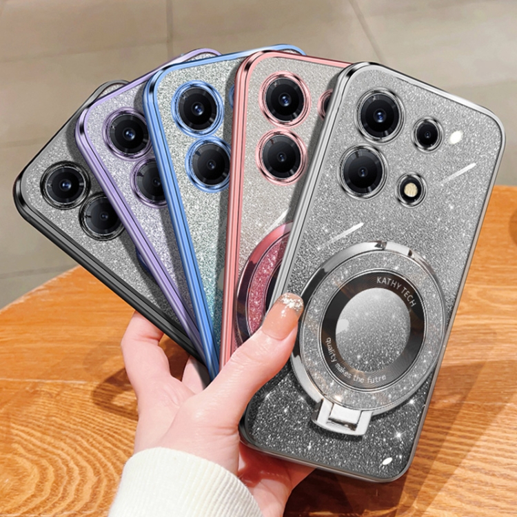 Funda TPU con Soporte Redondo y Purpurina Degradada Chapada Vip para Infinix Note 30 (Rosa)