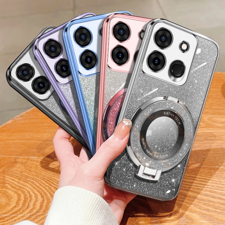 Funda de Teléfono TPU con Soporte Redondo y Purpurina Degradada para Infinix Smart 7 (Negra)