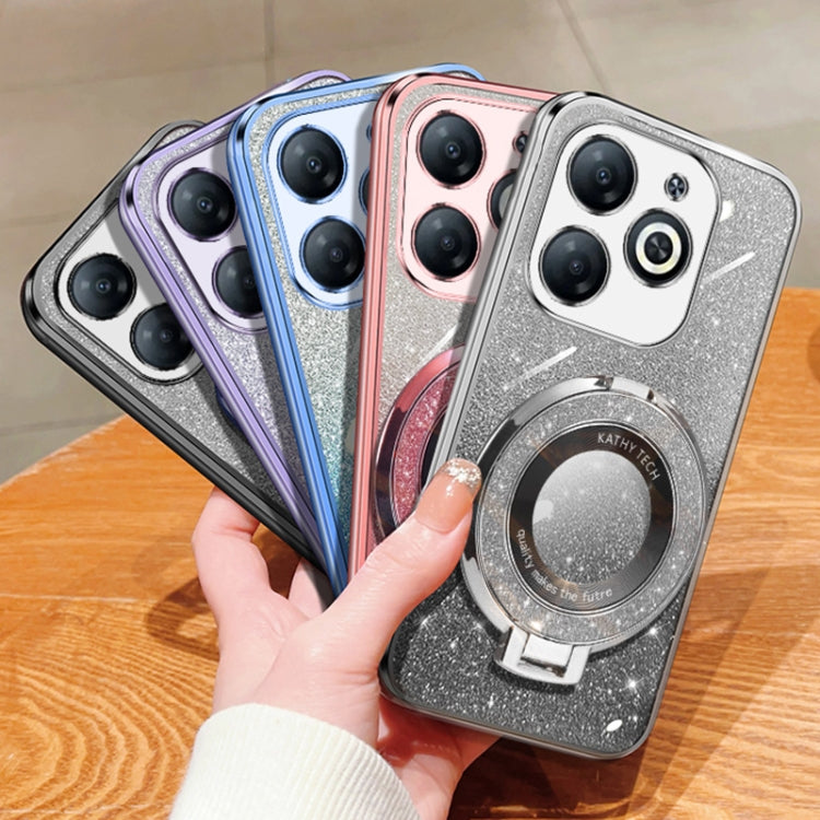 Funda de TPU con Soporte Redondo y Purpurina Degradada para Infinix Smart 8 y Smart 8 HD (Plateada)