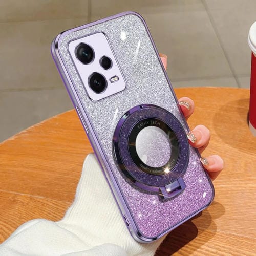 Funda de Teléfono de TPU con Soporte Redondo y Purpurina Degradada para Redmi Note 12 Pro+ (Morado)