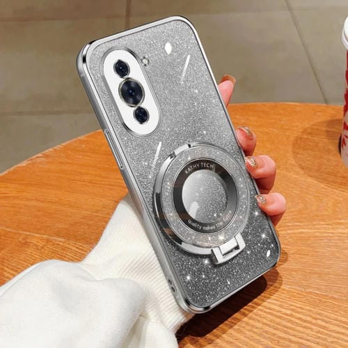 Funda de TPU con Soporte Redondo y Purpurina Degradada para Huawei Nova 10 Pro (Plateada)